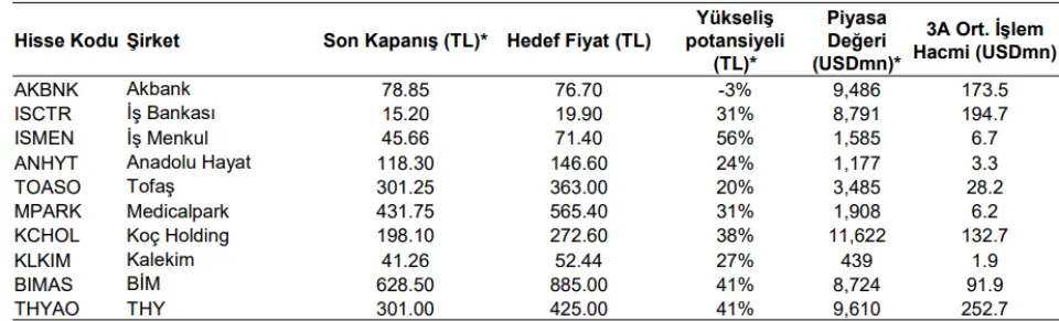 AKBNK, ISCTR, ISMEN, ANHYT, TOASO, MPARK, KCHOL, KLKIM, BIMAS ve THYAO!