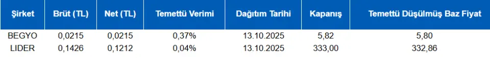Patron Alışları, Açıklanan Bilançolar, Temettüler, Sermaye Artırımları KAP Bülteni 13 Ekim