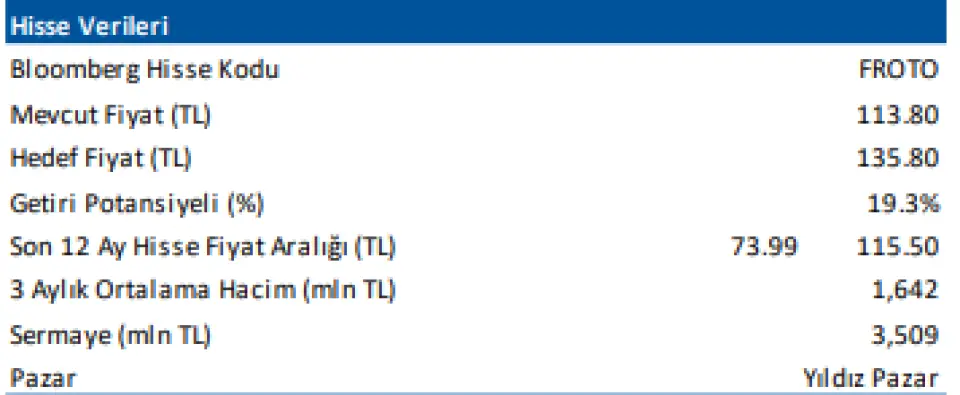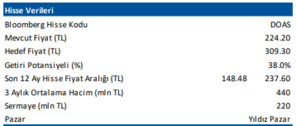 Son Açıklanan Veriler Işığında TOASO, DOAS ve FROTO Hedef Fiyatları