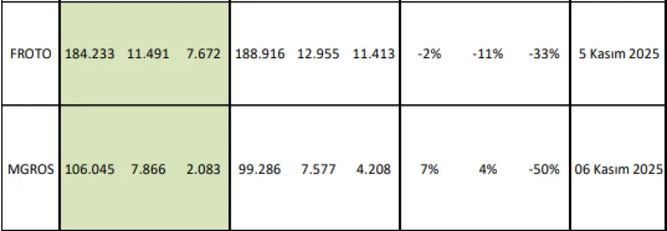 MGROS: 3Ç25’te online satış kanallarının & mağaza açılışlarının pozitif etkisi ile çoklu kanallarda büyümenin devam etmesini v e mevsimsellik etkisinin satış gelirlerine olumlu yansımasını bekliyor, FAVÖK'teki artışın ise daha sınırlı olacağını tahmin ediyoruz. Geçen senenin aynı döneminde net kar üzerindeki tek seferlik varlık satışı yüksek baz etkisi oluşturmaktadır.