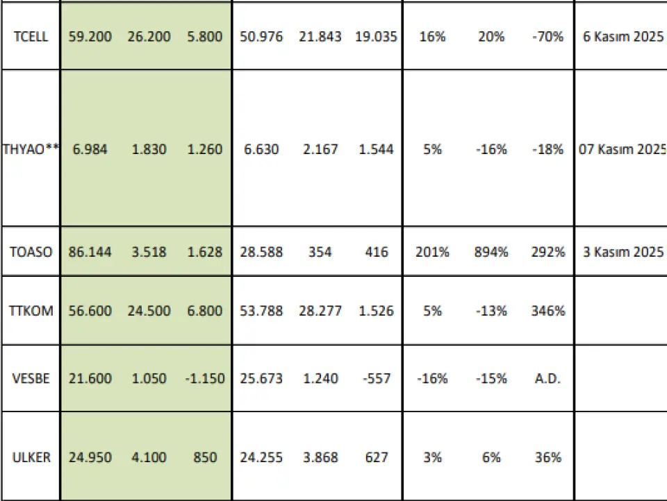 THYAO, CIMSA, TOASO, TCELL......Borsanın Dev Şirketleri İçin Kar Beklentileri