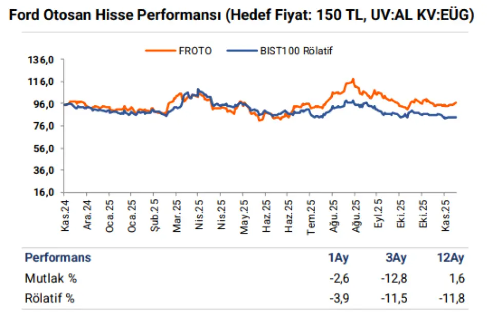 ▪ Ford Otosan (FROTO): 2025 yılı Kasım ayında şirketin otomobil satışları geçen yılın aynı dönemine göre %3,4 artarak 1.900 adede yükseldi. Hafif ticari araç satışları ise %0,4’lük sınırlı bir artışla 8.717 adede ulaştı. Böylece toplam araç satışları %0,9 artış göstererek 10.617 adet oldu. Ocak–Kasım 2025 döneminde şirket, geçen yılın aynı dönemine kıyasla %3,8 artışla toplam 91.059 araç satışı gerçekleştirdi. Aynı dönemde hafif ticari araç pazarındaki payı yıllık 1,8 puan azalarak %30,9’a gerilerken, toplam otomotiv pazarındaki payı da 0,7 puan düşüşle %8,0 seviyesine indi. Ford Otosan, 2025 yıl sonu için perakende satış adetlerinin 110-120 bin adet aralığında gerçeklemesini öngörmektedir.