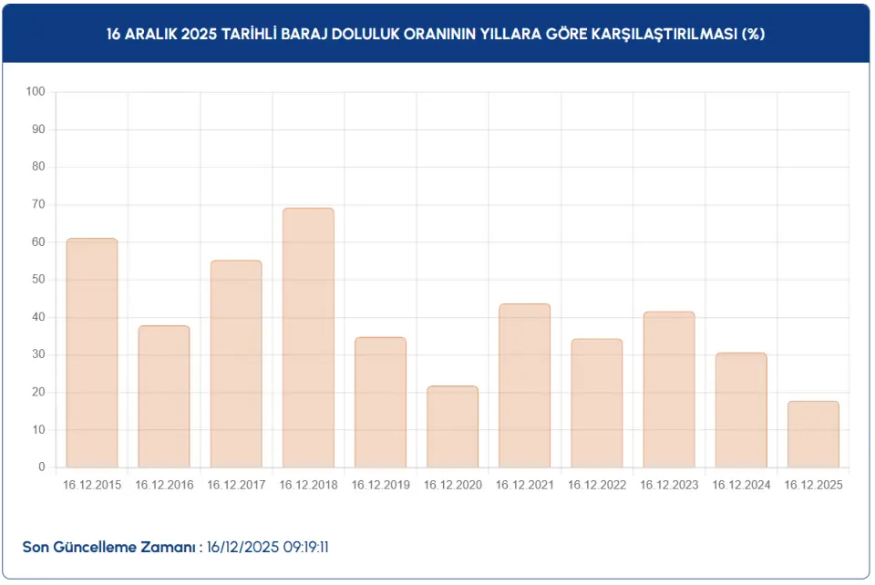 16 Aralık 2025’te Tarihi Dip: Barajlar Son 10 Yılın En Düşük Seviyesinde