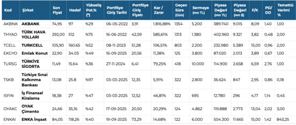 Kurum en çok beğendiği sektörleri ayrıntılı olarak açıkladı ve model portföyünü oluşturan hisseleri belirledi. İşte GCM Yatırım 2026 yılı model portföyünü oluşturan hisseler: