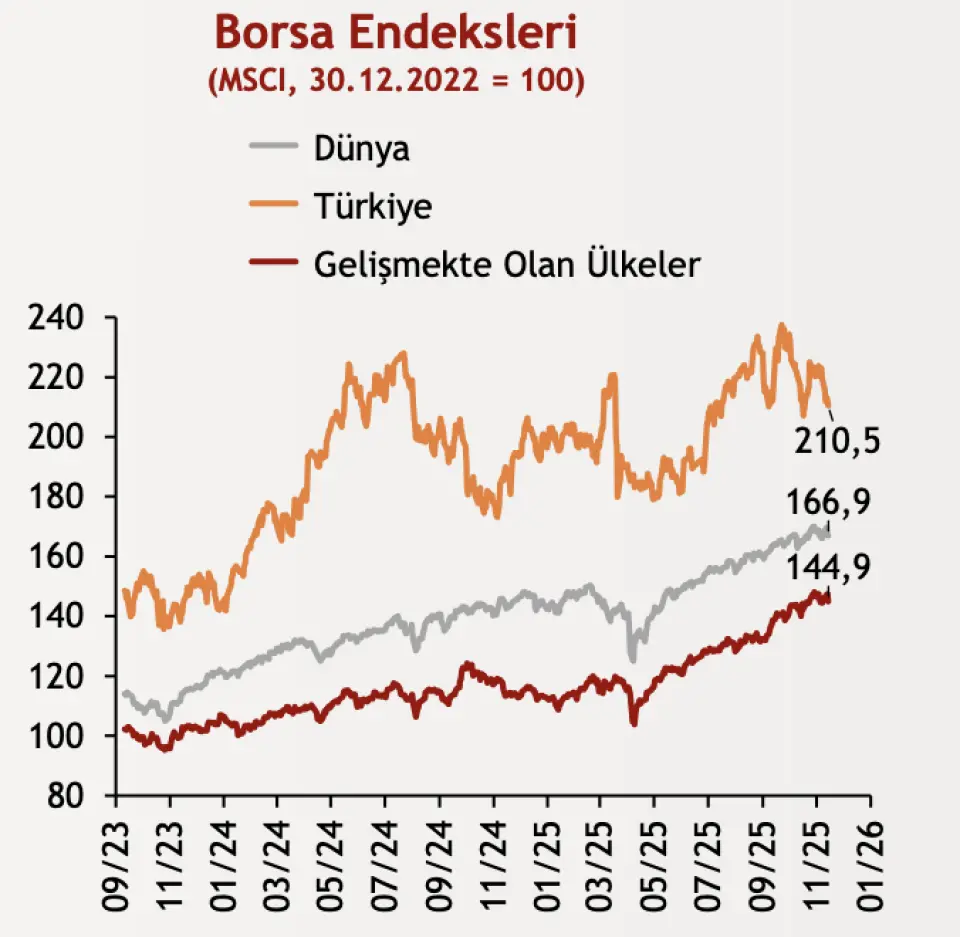 HMB Mehmet Şimşek, Merkez Bankası'nın Kasım ayı Piyasa Katılımcıları Anketi sonuçlarını sosyal medya hesabından değerlendirerek, sıkı para ve maliye politikaları, hedef enflasyonla uyumlu yönetilen yönlendirilen fiyat ayarlamaları ve arz yönlü tedbirlerin dezenflasyon sürecini desteklediğini; uygulamaların kararlılıkla sürdürülmesi halinde beklentilerin yeniden hedeflere yakınsamasını öngördüklerini ifade etti.
