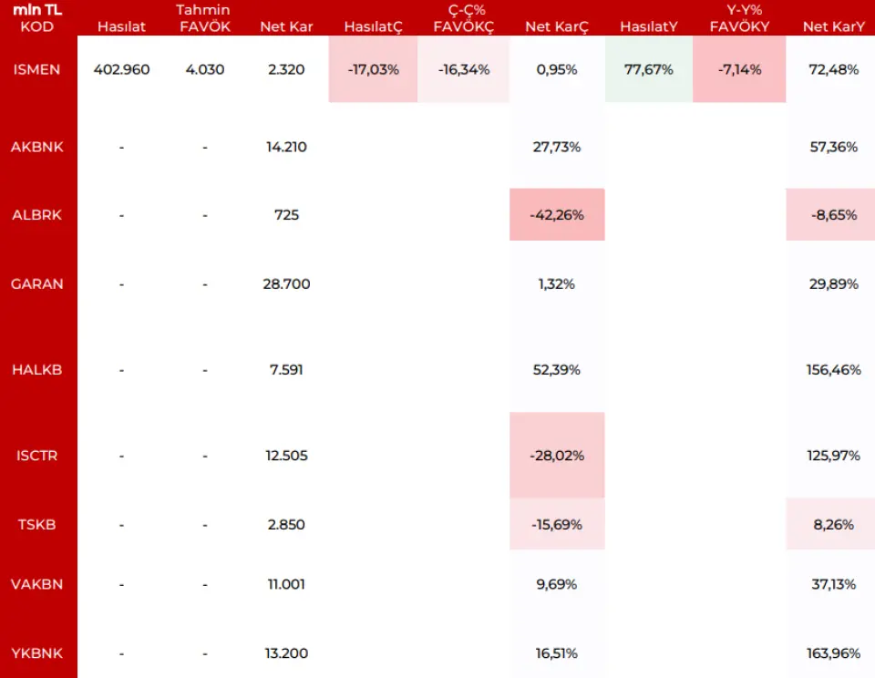 ISMEN: Güçlü ivmelenen pay kredi ve komisyonun yanı sıra güçlenen yan hizmetler çerçevesinde beklentilerimiz dahilinde devam eden bir yapı gözlemliyoruz. Konsolide ürünler harici net karın 1,61 milyar TL olmasını bekliyoruz.