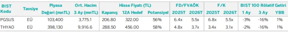 Garanti BBVA Yatırım THYAO hissesine 456 TL hedef fiyat tespit etti. Bu hedef hissede %58 kazanç potansiyeline işaret ediyor. Kurum PGSUS hissesine ise 322 TL hedef fiyat tespit etti ve %56 kazanç potansiyeli açıklandı.