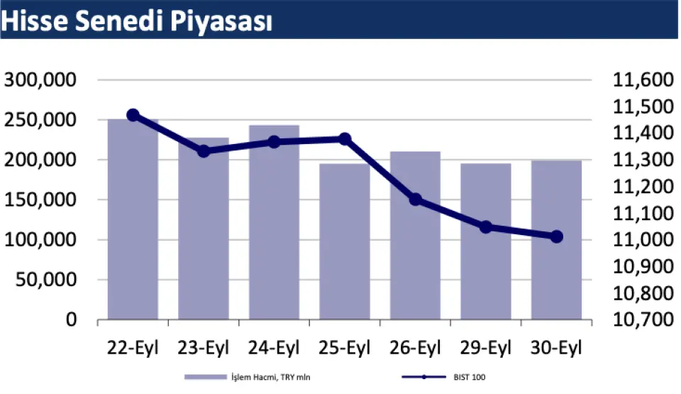 Dün endeks -0.33% değişimle 11.012 seviyesinde kapattı. İşlem hacmi yüksek seviyede gerçekleşti.