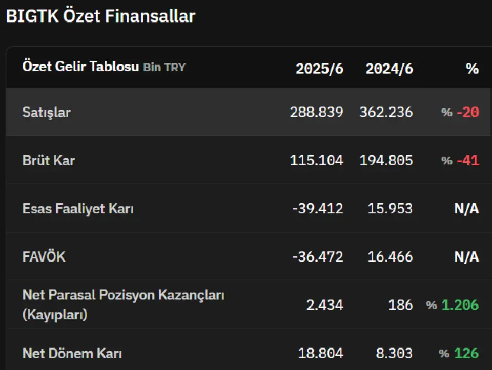 BIGTK 3. çeyrek bilançosunu henüz açıklamadı. Ama son açıklanan 6 aylık bilançoda şirketin karı, geçen yılın aynı dönemine göre %126 artarak 18.804.000 TL ye çıkmıştı.