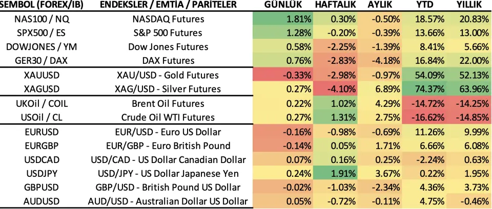 Endeksler/ Emtialar/ Pariteler
