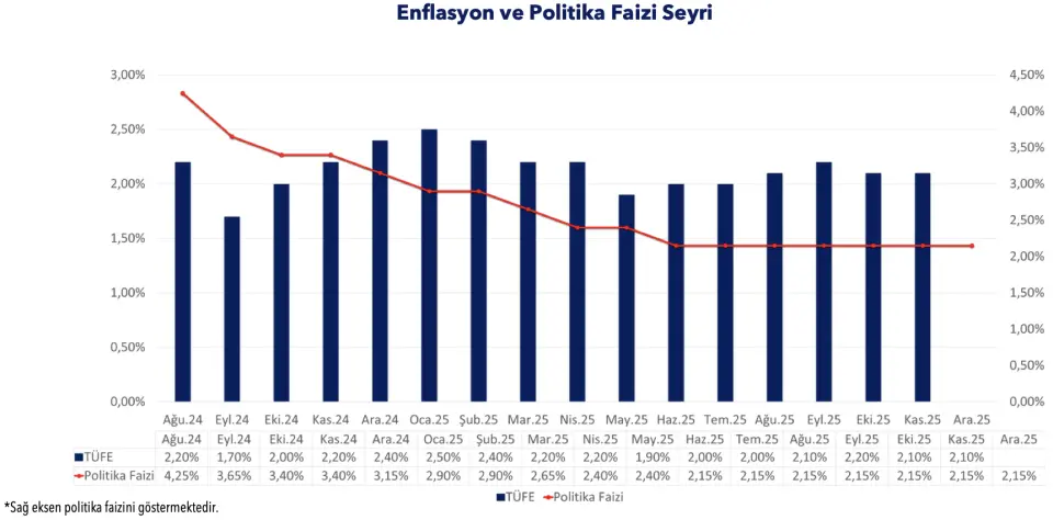 Banka, 2025-2028 dönemi için enflasyon ve ekonomide büyüme tahminlerini de güncelledi. Manşet enflasyonun 2025'te ortalama %2,1, 2026'da 1,9, 2027'de 1,8 ve 2028’de %2 olması bekleniyor. 2026 enflasyon tahminini hizmet fiyatlarının daha yavaş düşeceğini öngördüğü için 0,2 puan yukarı yönlü revize etti. Haziranda 2025 için %1,2 olarak öngörülen ekonomik büyüme, %1,4'e revize edilirken, gelecek yıl için de %1,1'den %1,2'ye yükseltildi.