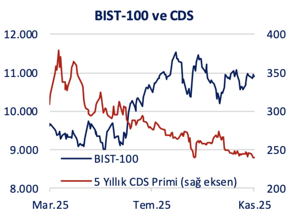 BIST-100 endeksi Perşembe kapanışına göre haftalık bazda %0,2 ile sınırlı yükseldi. Türk lirası ABD doları karşısında yatay seyrederken EUR/USD paritesindeki yükselişe paralel olarak euro karşısında bir miktar değer kaybetti. Türkiye’nin 5 yıllık CDS risk primi bugün itibarıyla gün içerisinde 239 baz puan ile son 7 yılın en düşük seviyelerine yakın seyrediyor. Son olarak 18 Eylül’de 5 yıllık CDS risk primi 239 baz puan seviyesine kadar gerilemişti.