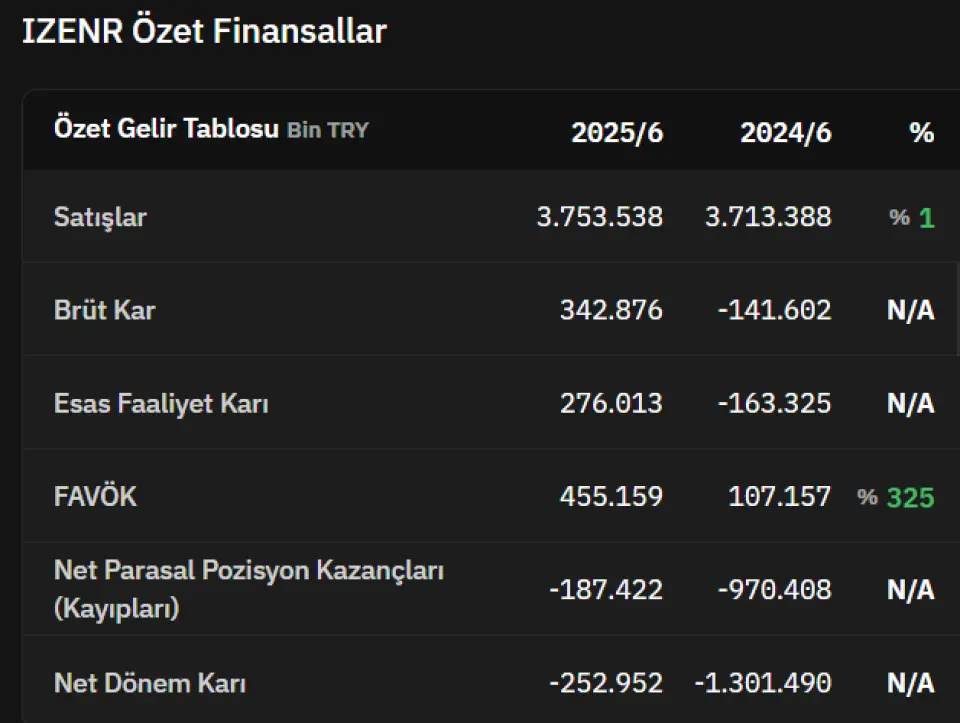 Oyak Yatırım IZENR hissesi için 15,93 TL hedef fiyat açıkladı. IZENR borsada 9 TL civarı fiyattan işlem görüyor. IZENR en son açıkladığı 6 aylık bilançosunda zarar açıkladı ancak. geçen yılın aynı döneminde açıklanan 1.301.490.000 TL olan zarar rakamını 252.952.000 TL ye indirdmişti.
