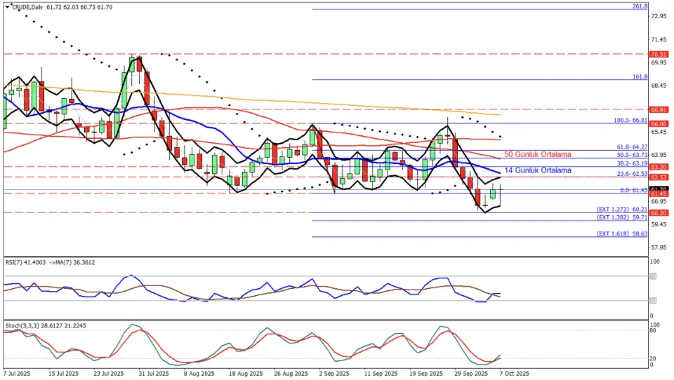 Stokastik osilatörün 20 bandından yukarı yönlü dönüş sinyali vermesi, kısa vadede tepki alımlarının devam edebileceğini destekliyor. Ancak bu hareketin kalıcı olabilmesi için fiyatın 62,50 – 63,20 direnç bandını aşması gerekiyor.