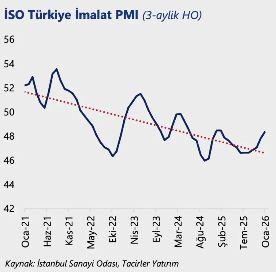 İSO Türkiye İmalat PMI, Ocak Ayında 48,9 Seviyesinden 48,1’e Geriledi! Tacirler Yatırım İstanbul Sanayi Odası Türkiye İmalat PMI, Ocak Ayı Verilerini Değerlendirdi. Detaylı Veriler Haberimizde...