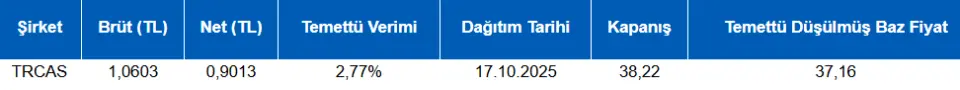 - TCKRC – Şirket paylarının geri alınması kapsamında 200.000 adet pay 42,10 TL fiyattan geri alındı.