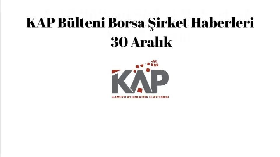 KAP Bülteni Borsa Şirket ve Hisse haberleri 30 Aralık Salı
