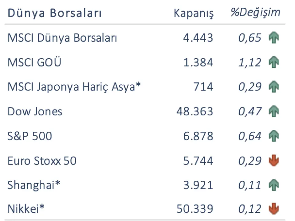 Altın günü %2,5’lik yükselişle 4.446 USD/ons seviyesinden kapatırken, gümüşün ons fiyatı da gün içerisinde 69,98 USD ile rekor kırdı. Japonya Maliye Bakanı Satsuki Katayama, faiz oranlarının yükseltilmesine rağmen Cuma günü yenin zayıflamasının temel ekonomik göstergelerle uyumlu olmadığını belirterek, bu tür hareketlere karşı cesur adımlar atabileceklerini ifade etti.