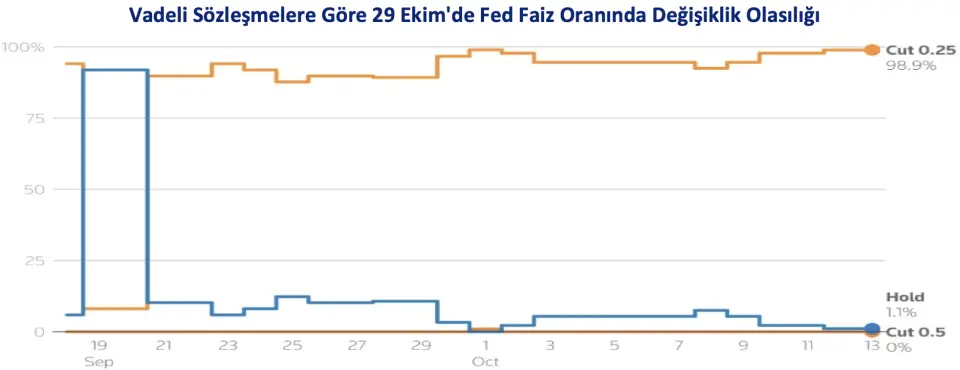 Küresel piyasalar, Fed Başkanı Jerome Powell'ın güvercin açıklamaları sonrası yeniden iyimser bir havaya büründü. Powell'ın faiz indirimlerine işaret etmesi ve bilanço küçültmenin yakında sona erebileceği sinyali, Aralık ayına kadar yaklaşık 48 baz puanlık indirim beklentilerini güçlendirdi.