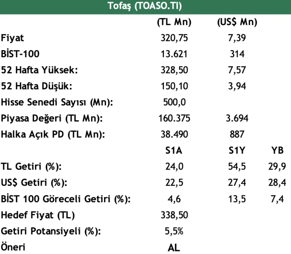 Şeker Yatırım; DOAS, TOASO ve FROTO Hisselerine "AL" Önerisinde Bulundu!