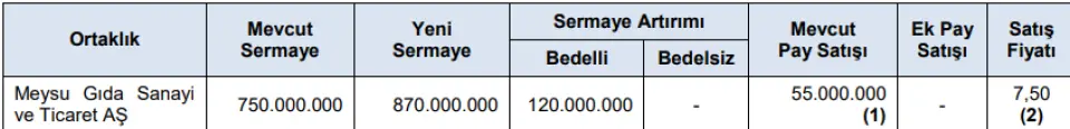 1) Mevcut ortaklardan Gülsan Gıda Sanayi Ticaret AŞ’ye ait 55.000.000 TL nominal değerli (B) grubu paylar halka arza konu edilecektir.