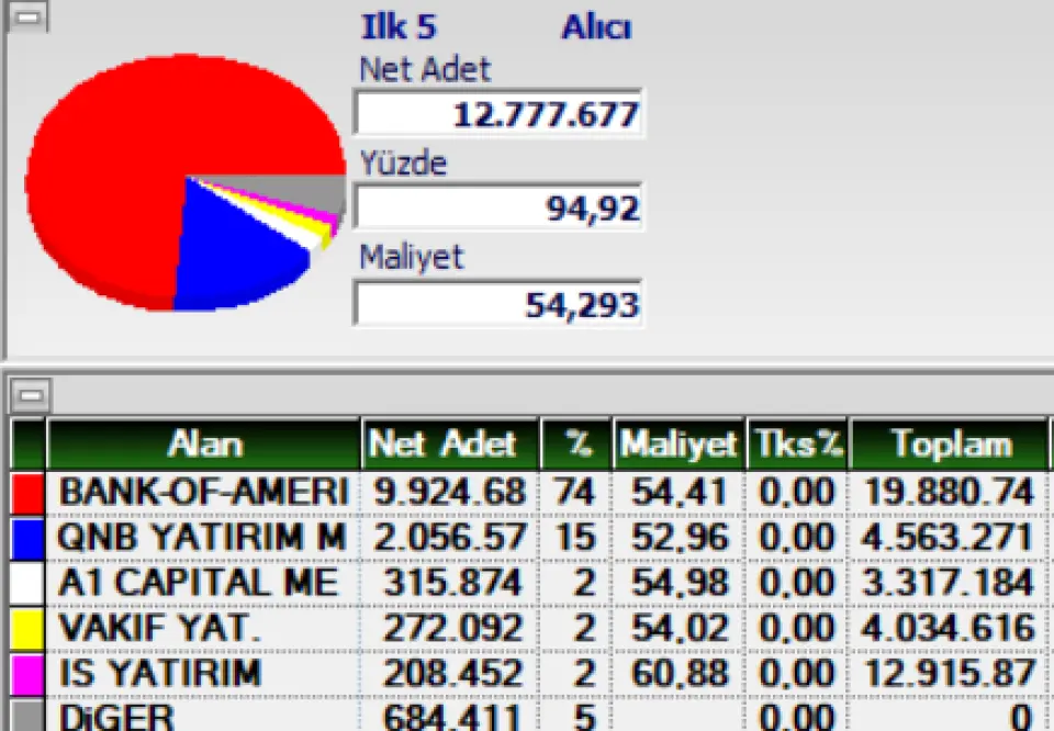 TTKOM hissesinde bugün en iyi alıcı Bank of America. Kurum bu saat itibariyle hissede 10 milyon lota alış yapan kurum bugün tahtada en iyi alıcı konumunda.