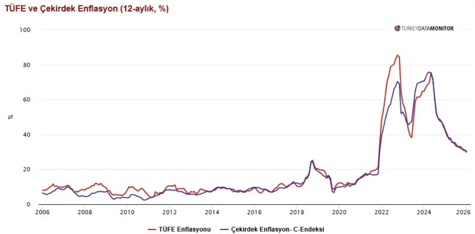 TUİK Ocak ayı enflasyon verisinde temel yılı güncelledi ve hesaplama metodolojisinde değişikliklere gitti, TÜFE'nin 2003=100 baz yılı, 2025=100 olarak güncellendi.