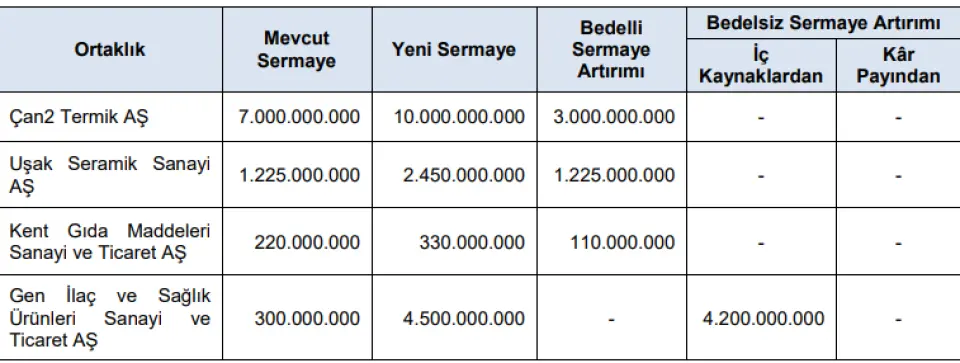 Çan2 Termik AŞ CANTE %42,86 bedelli sermaye artırımı onaylandı.