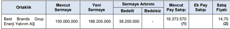 Best Brands Grup Enerji Yatırım AŞ halka arzı SPK onayı aldı. Halka arz 14,70 TL fiyattan yapılacak ve toplam 54.578.570 lot hisse halka arz edilecek.
