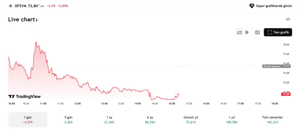 Bugün ise moraller biraz bozuldu. Hisse %4 değer kaybederek 72,5 TL’ye kadar indi. Kimine göre bu geçici bi düşüş, kimine göreyse daha da sürecek.
