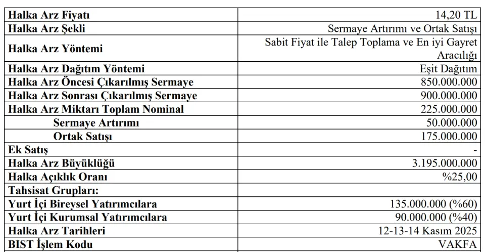 Marbaş Menkul Değerler KAP'a 11 Kasım akşamı bir bildirim gönderdi. Paylaşılan açıklamada 12-14 Kasım arası talep toplayacak olan yeni onaylanmış Vakıf Faktoring A.Ş halka arzı için bir fiyat tespit raporu incelemesi yayınladı. Aracı kurum ifadelerine şu şekilde yer verdi: