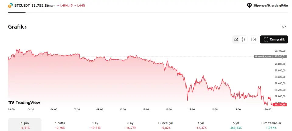 Bitcoin 90.000 desteğini kırdı! Hedefi neresi olacak!