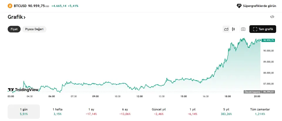 Bitcoin tekrardan 91.000 dolara yükseldi!