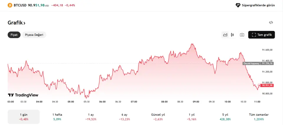 Bitcoin'de dalgalı hareket devam ediyor! 90.000'i koruyabilecek mi?