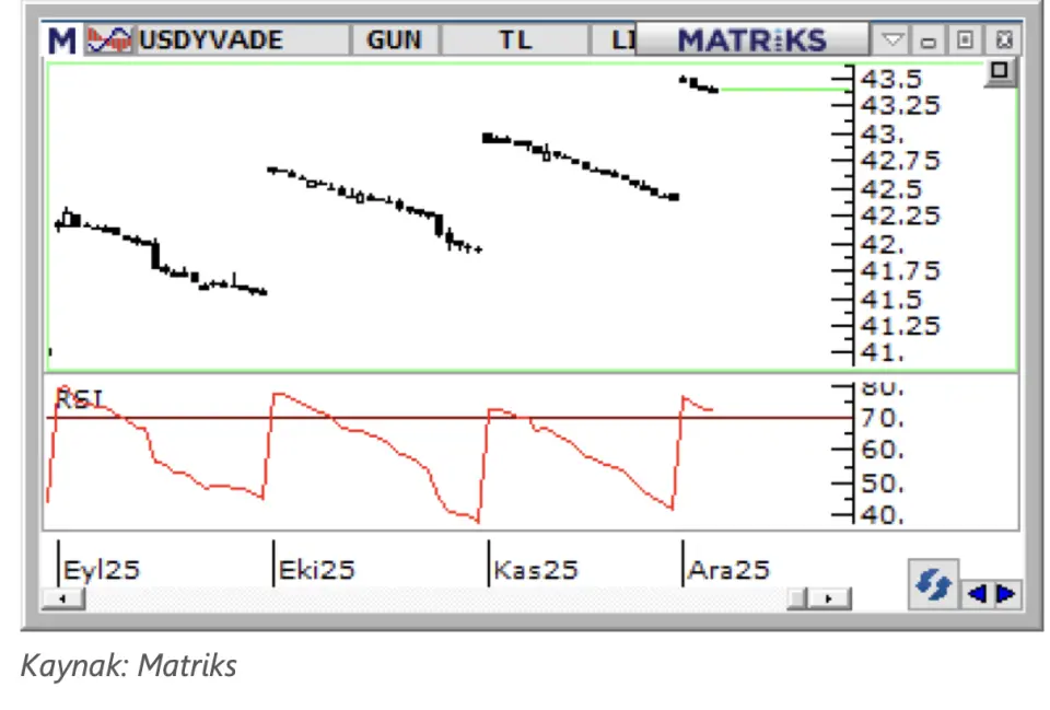 - "Günü 43.371 seviyesinde kapatan USD/TL vadeli işlem kontratlarında 43.3275, 43.241, 43.154 ve 43.0675 destek olarak izlenebilir. 43.4145, 43.501, 43.588 ve 43.6745 ise direnç noktalarını oluşturuyor."