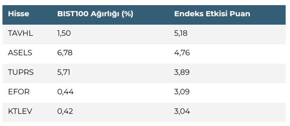 Haftanın dördüncü işlem gününde BIST100 endeksi güne %0,07 azalışla, 11.029,06 seviyesinden başladı. Günün ilk yarısında endekste pozitif seyir izleniyor. Pozitif fiyatlamanın devam etmesi halinde 11.250 seviyesi direnç olarak takip edilebilir. Olası baskılanmalarda 11.025 seviyesi destek konumunda bulunurken altında fiyatlamalar 55 günlük ortalamaya (10.829) doğru süreci uzatabilir. Endeks etkisi açısından bakıldığında TAVHL ve ASELS’nın pozitif fiyatlamayla endekse destek veren tarafta yer aldığı görülmektedir.