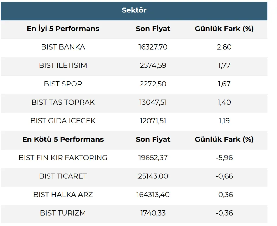 Sektör görünümlerinde ilk yarıda genel olarak pozitif seyrin hakim olduğu görülmektedir. En iyi performans sergileyen sektör(ler) Banka, İletişim ve Spor iken baskı görenlerde Finansal Kiralama Faktoring, Ticaret ve Halka Arz dikkat çekmektedir.