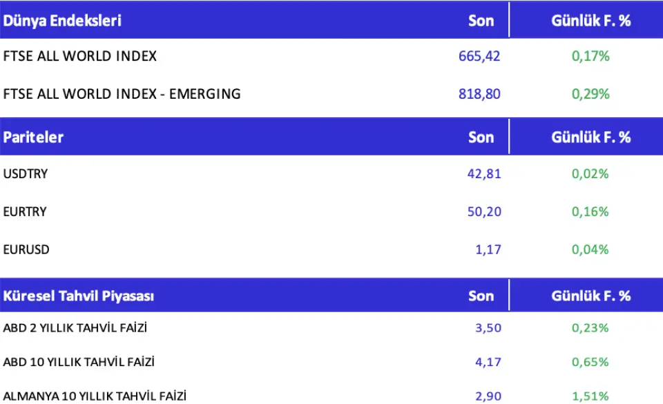 ABD ekonomisi üçüncü çeyrekte yüzde 4,3 büyüyerek son iki yılın en hızlı artışını kaydetti. Bu veri sonrası Wall Street yükselirken dolar geriledi, kısa vadeli tahviller zayıf performans gösterdi. S&P 500 teknoloji hisseleri öncülüğünde artışını dördüncü güne taşıdı ve 6.900 puanı aştı. Yatırımcılar, Fed’in olası faiz indirimi beklentilerini tartarken, Noel Baba Rallisi öncesi mevsimsel iyimserlik devam ediyor. Opsiyon piyasaları ise dalgalanma riskine işaret ediyor. ABD’nin metal ithalatına olası gümrük vergisi tehditleri ve Venezuela’daki gerilimler, değerli metallerin güvenli liman cazibesini artırıyor ve stok taleplerini yükseltiyor.