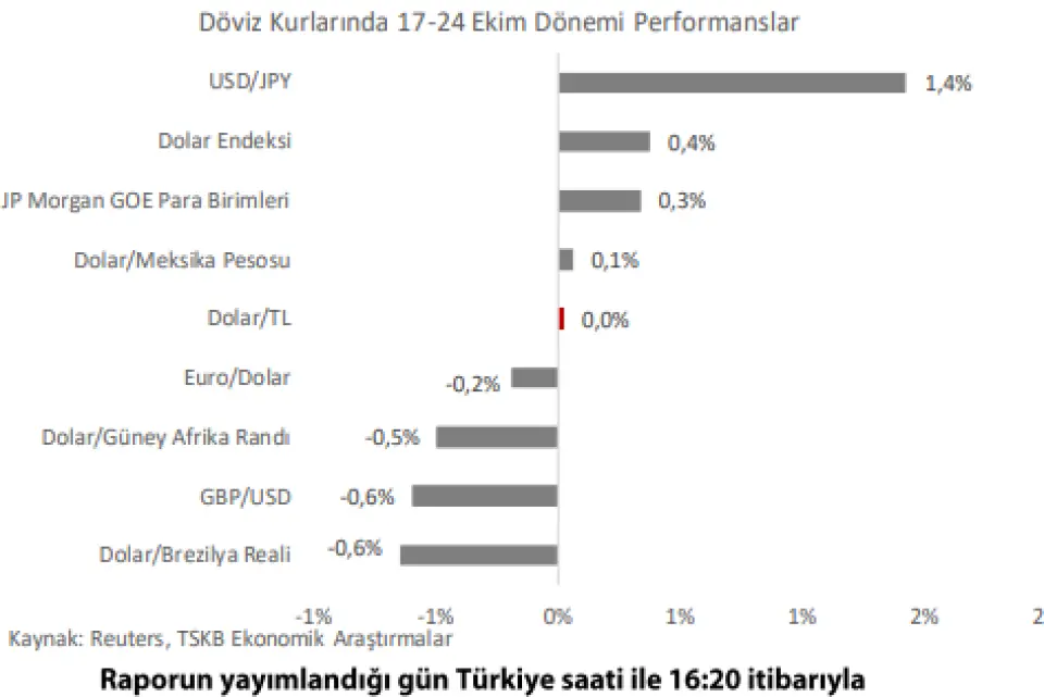 Bu hafta açıklanan üçüncü çeyrek şirket bilanço verilerinin önemli bir bölümünün tahminleri aşması da risk iştahını destekleyen bir faktör oldu. Uzun süredir yükseliş kaydeden değerli metallerde hafta içinde görülen düşüşle birlikte bir miktar düzeltme görülürken, son günlerde dalgalı bir seyir hakim. ABD yönetiminin iki büyük Rus petrol şirketine yaptırım uygulama kararı alması ve bunu takiben Çinli devlet petrol şirketlerinin Rusya'dan petrol alımlarını askıya almasıyla petrol fiyatları hızlı yükseldi.