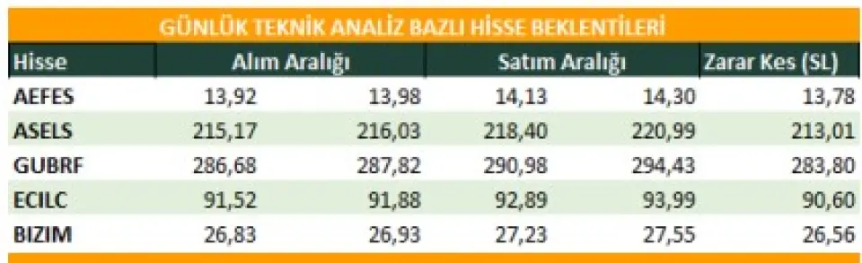 Borsa İstanbul’da bugün teknik görünümde öne çıkan hisseler AEFES, ASELS, GUBRF, ECILC ve BIZIM oldu. NCM Investment’in yayımladığı günlük teknik analizde, bu hisselerde kısa vadeli hareketlilik ve tepki alımlarının öne çıkabileceği vurgulandı.