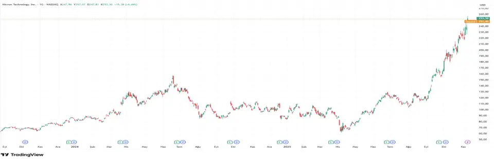 10 Kasım 2025’te Micron Technology, Inc. (MU) hissesi 253,30 $ seviyesinden kapanarak, önceki kapanışa göre yaklaşık %6,5 artış gösterdi.