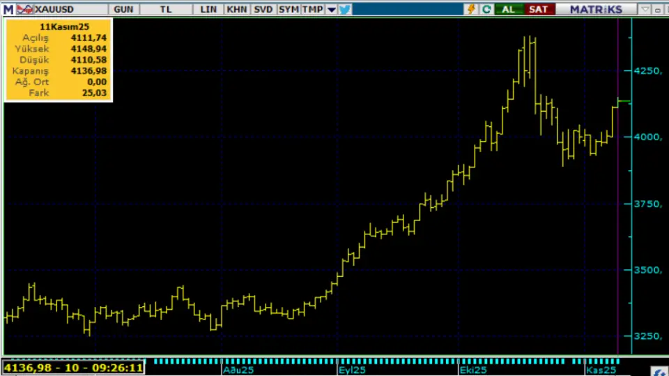 Kısa vadede altın 4,000 Usd üstünde kalıcılık sağlamaya çalışıyor. Altın fiyatlarında teknik olarak psikolojik destek noktası 4.000 Usd destek noktası olarak takip edilebilir. 4.000 Usd altında aşağı yönlü denge arayışı devam edebilir. Bu sabah 4.145 Usd seviyesindeki ons altında 4.163 ve 4.190 Usd seviyeleri gün içi direnç, 4.144 ve 4,000 Usd seviyeleri gün içi destek seviyeleri olarak izlenebilir. Bugün yatay sınırlı pozitif seyir izleyebilir