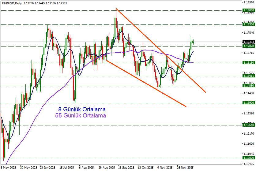 Destekler: 1.1707 – 1.1615 – 1.1541