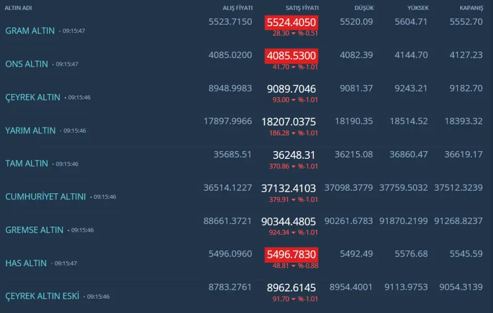 Altın Düşüşte! Haftanın Son Günü Kapalıçarşı Gram Çeyrek Fiyatları