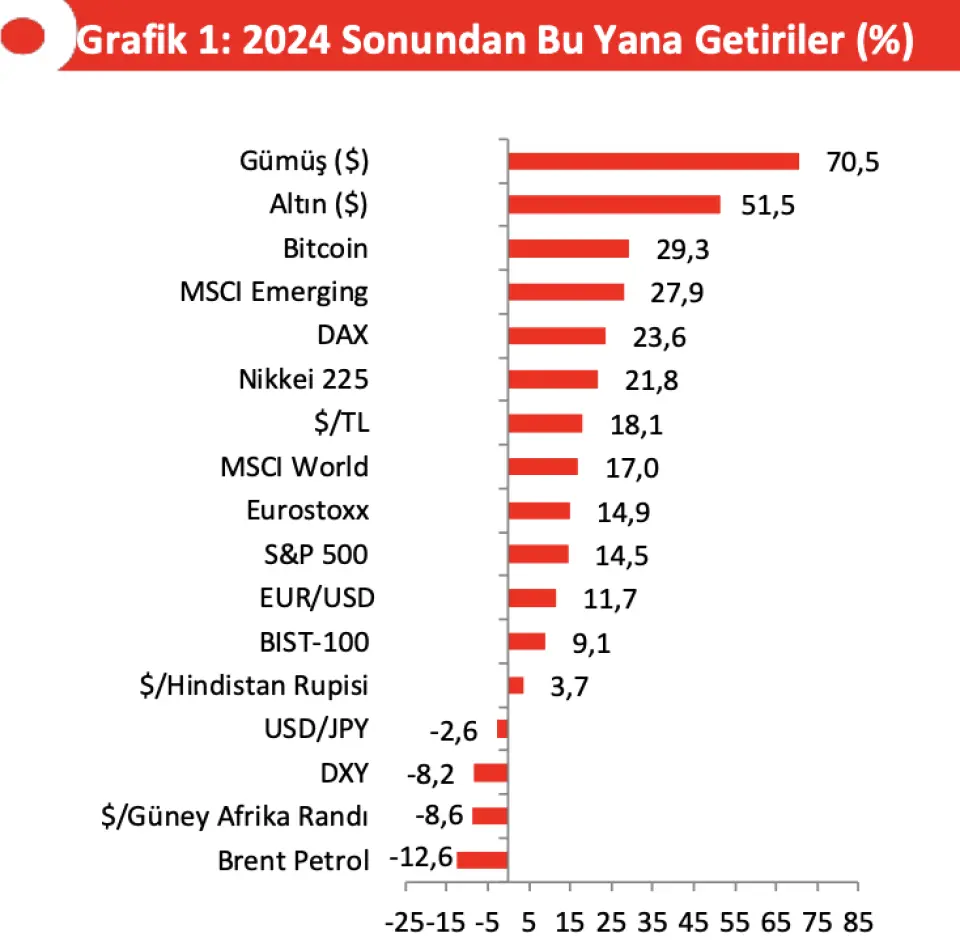 Asya piyasalarında ise bu haftaki ana gündem Japonya’da yeni başbakanın belirlenmesiyle siyasi belirsizliklerdeki azalış oldu. Başbakan Sanae Takaichi’nin göreve gelmesi ülkede mali genişleme beklentilerini desteklerken, Nikkei 225 kazançlarını haftalık bazda %5,1’e, aylık bazda %9,7’ye yükseltti. Diğer ülke borsalarında ise karışık seyir takip edildi.