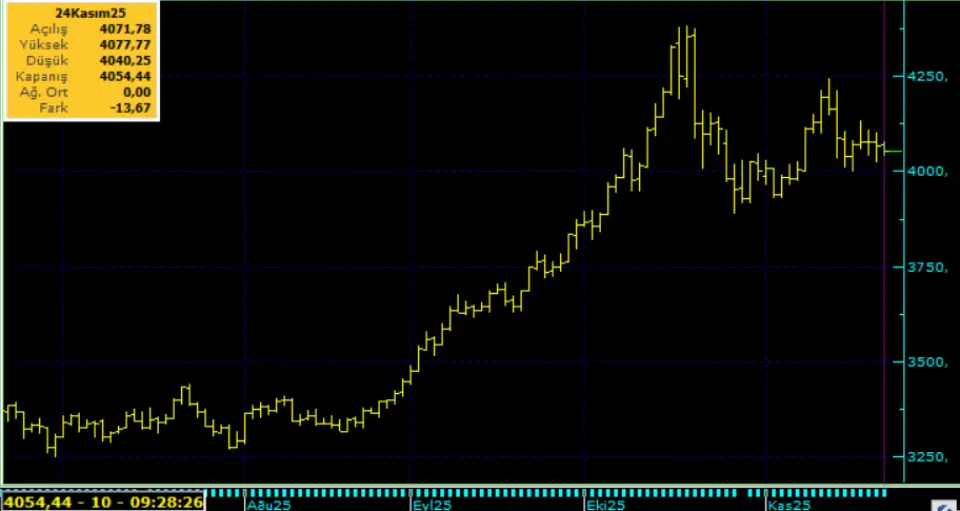 Yükselişin devam edeceği söylemi böylece masada kalabiliyor. Kısa vade de tepki hareketi zayıflama kaydediyor ve altın kritik 4 bin seviyesi üzerinde tutunmaya çalışıyor. Altın 4.250-3.900 Usd bant aralığında işlem görebilir. Altın fiyatlarında destek noktası 4.000 Usd olarak takip edilebilir. 4.000 Usd altında aşağı yönlü denge arayışı devam edebilir. Bu sabah 4.055 Usd seviyesindeki ons altında 4.100 ve 4.140 Usd seviyeleri gün içi direnç, 4.050 ve 3.960 Usd seviyeleri gün içi destek seviyeleri olarak izlenebilir. Bugün yatay sınırlı negatif seyir izleyebilir.