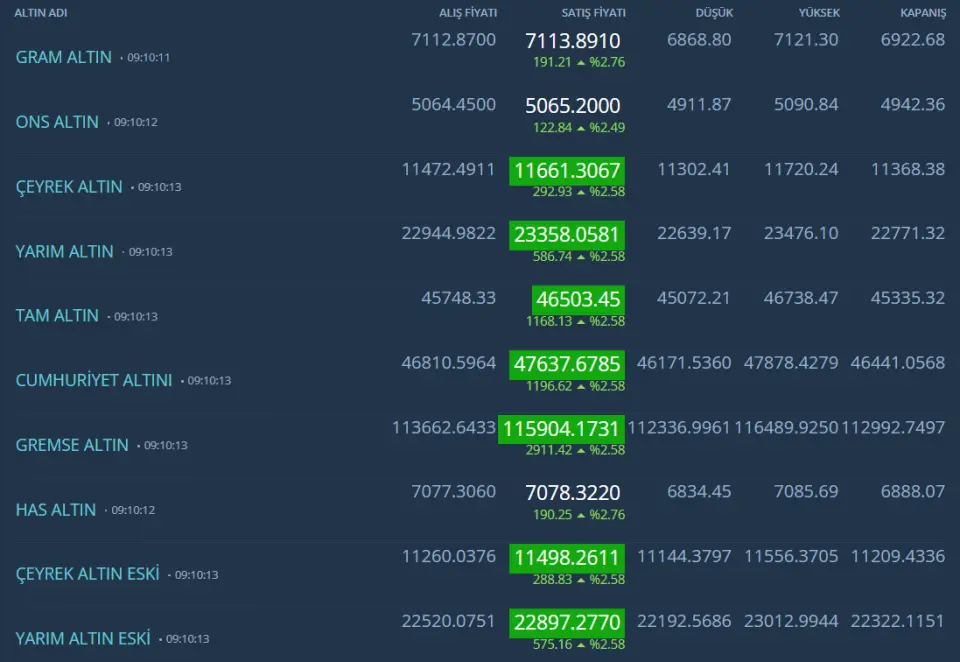 Kapalıçarşı Altın fiyatları