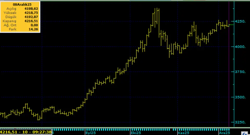 Bant hareketini (4.250-4.000 Usd) sürdüren altın yukarıda bahsettiğimiz nedenlerden dolayı kısa vadede sıkışmaya devam edebilir. 4.250 Usd üstünde 4.250-4.380 bant aralığında fiyatlamalara geçiş yapılabilir. Bu sabah 4.210 Usd seviyesindeki ons altında 4.250 ve 4.350 Usd seviyeleri gün içi direnç, 4.150 ve 4,130 Usd seviyeleri gün içi destek seviyeleri olarak izlenebilir. Bugün sınırlı pozitif seyir izleyebilir.