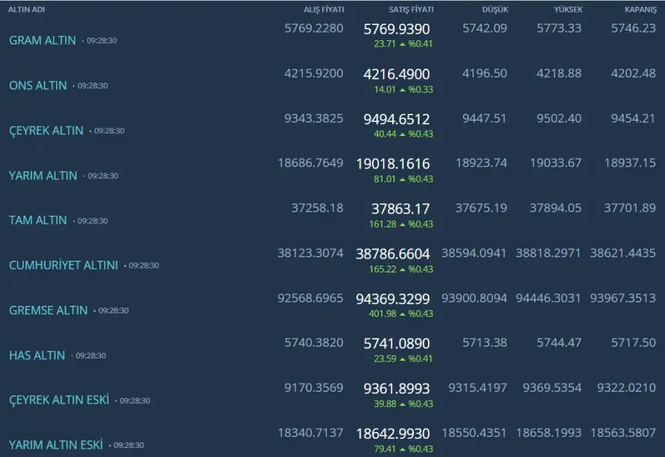 Kapalıçarşı Altın fiyatları: