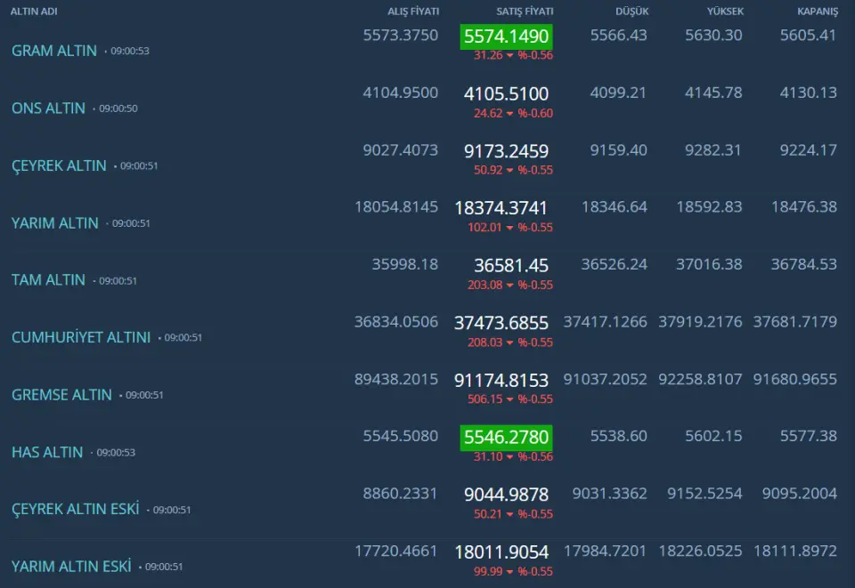 Kapalıçarşı Altın fiyatları: